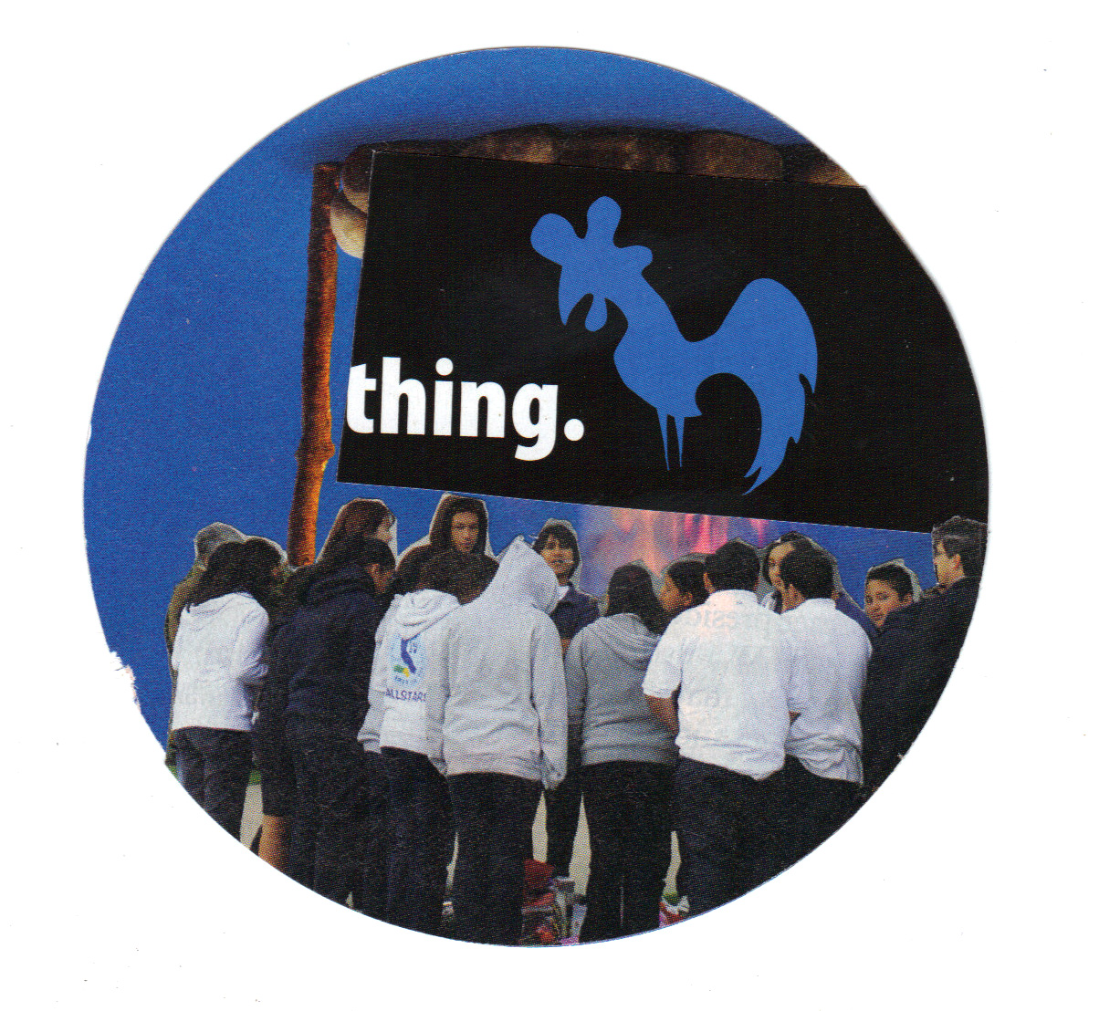 The Button Project was begun by gathering the two media. Whole pictures were then chopped, spliced, and mounted into new compositions forcing the viewer to consider the imagery and iconography in different ways. These new images were then turned into buttons that can be advertised by anyone. By limiting the presentation to three inch buttons, the combinations come into greater focus and can be spread to a large audience, although not quite as large as in their initial debut. A contemporary model selling perfume is placed next to a model from days gone by exposing the changing definitions of beauty. Black and white figures view at you through the weave of a bright fabric. The ocean gives breath to an elephant. Anything can be possible with the pictures of the world that surrounds us. So, step into our combined imagination and step out with a memento.