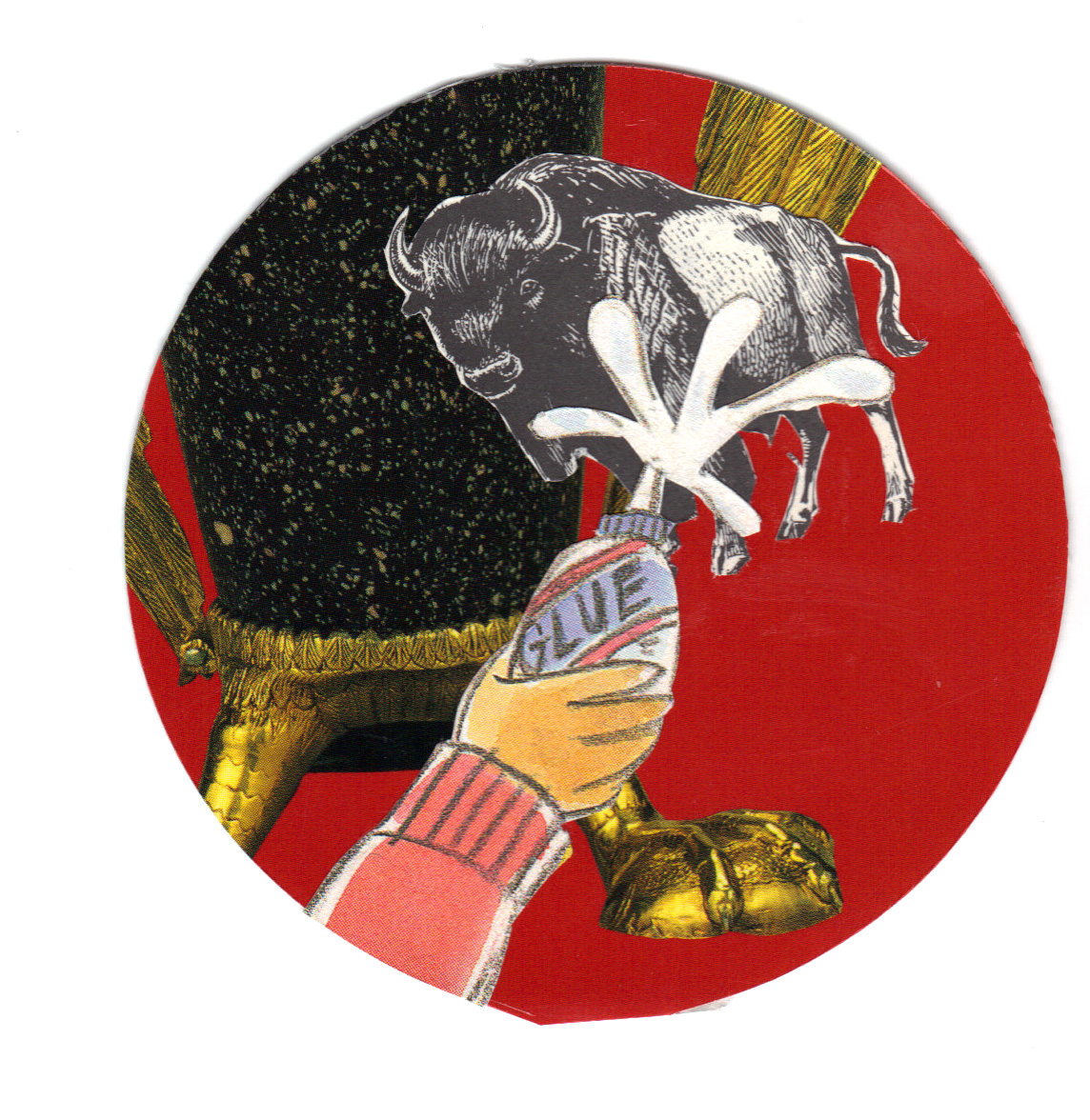 The Button Project was begun by gathering the two media. Whole pictures were then chopped, spliced, and mounted into new compositions forcing the viewer to consider the imagery and iconography in different ways. These new images were then turned into buttons that can be advertised by anyone. By limiting the presentation to three inch buttons, the combinations come into greater focus and can be spread to a large audience, although not quite as large as in their initial debut. A contemporary model selling perfume is placed next to a model from days gone by exposing the changing definitions of beauty. Black and white figures view at you through the weave of a bright fabric. The ocean gives breath to an elephant. Anything can be possible with the pictures of the world that surrounds us. So, step into our combined imagination and step out with a memento.